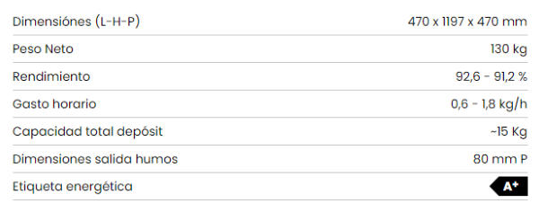 confort • Bujía de cerámica • Salida para la descarga de humos: